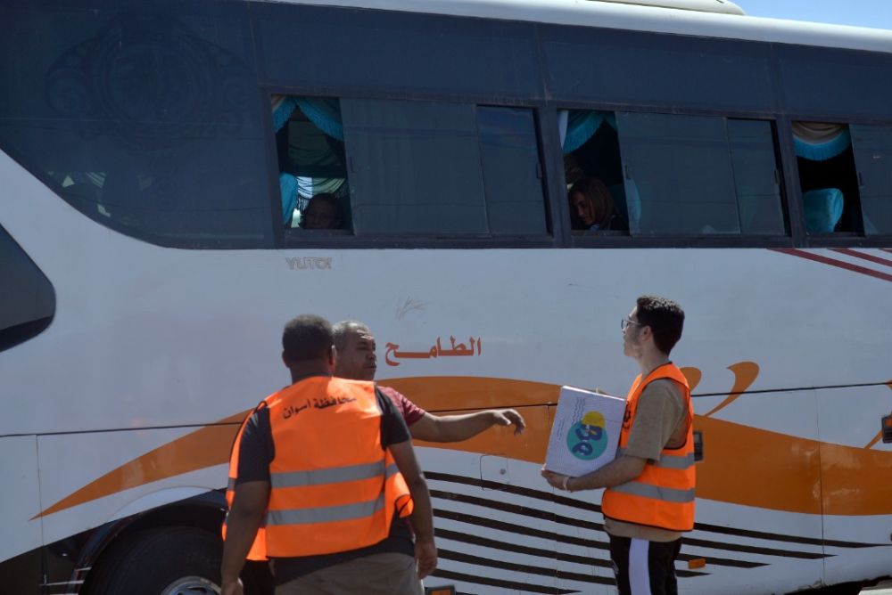 5月2日,在埃及南部阿斯旺省的一处汽车站,一名工作人员为逃离苏丹进入埃及的难民发放水。新华社发(拉德万摄)